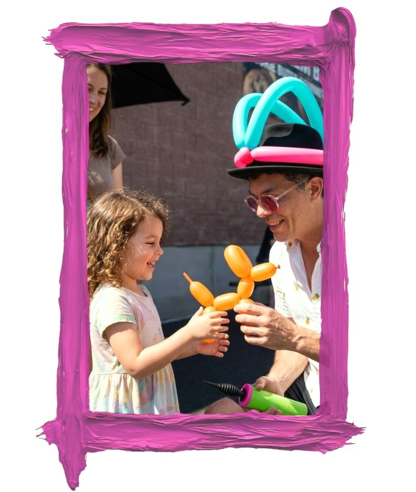 We tailor our services to your vision. For balloon decor, this means bespoke designs and perfectly matched color palettes that elevate your theme. For balloon twisting, we curate our high-energy performance and vibrant, recognizable designs to match your party's style and engage guests of all ages.